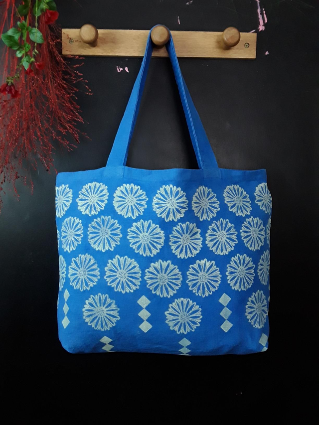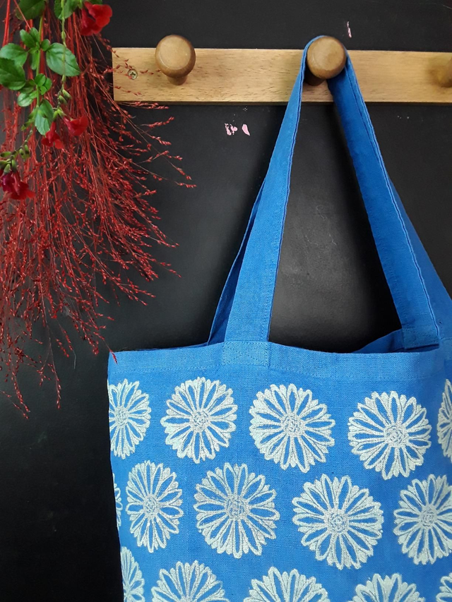 Tous les cabas sont uniques en leur genre. Chaque côté est différent. L' impression à la linogravure est une méthode d'impression la plus lente et simple, c'est ce qui donne des imprimés d'une grande subtilité et élégance de par ces variations et imperfections.