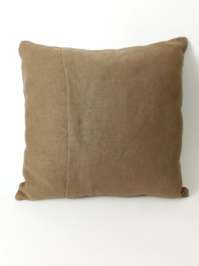 De la collection PATCHWORK, ce coussin est composé de chutes de tissu teinté à l'acacia à cachou et sulfate de fer.