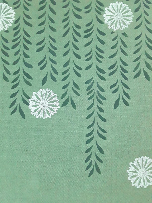 Essuie-main / torchon en lin imprimé à la linogravure et au pochoir, au motif LIERRE et PÂQUERETTES, donnera une touche d'originalité à votre cuisine. Le lin présente plusieurs avantages, c'est une matière intemporelle, très robuste et très absorbante elle sèche très vite après avoir essuyé votre vaisselle.