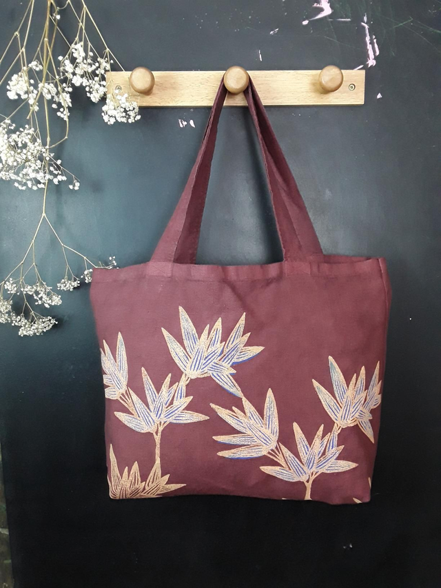 Tous les cabas sont uniques en leur genre. Chaque côté est différent. L' impression à la linogravure est une méthode d'impression la plus lente et simple, c'est ce qui donne des imprimés d'une grande subtilité et élégance de par ces variations et imperfections.