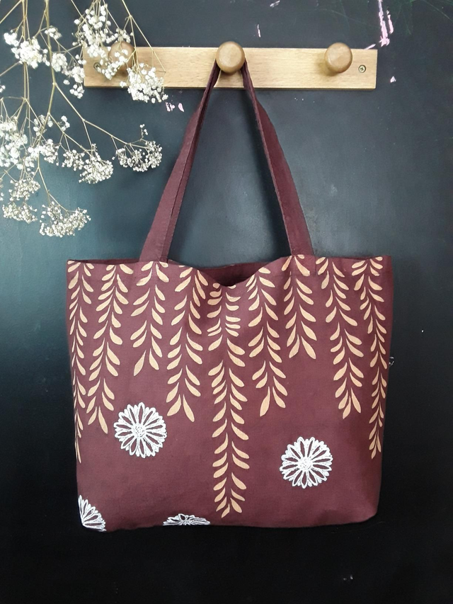 Tous les cabas sont uniques en leur genre. Chaque côté est différent. L' impression à la linogravure est une méthode d'impression la plus lente et simple, c'est ce qui donne des imprimés d'une grande subtilité et élégance de par ces variations et imperfections.