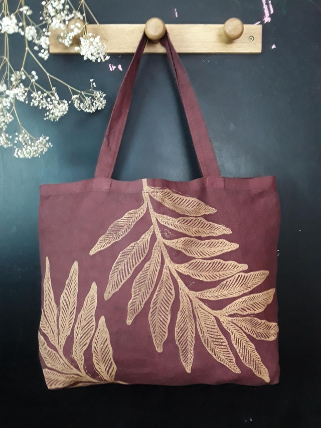 Tous les cabas sont uniques en leur genre. Chaque côté est différent. L' impression à la linogravure est une méthode d'impression la plus lente et simple, c'est ce qui donne des imprimés d'une grande subtilité et élégance de par ces variations et imperfections.