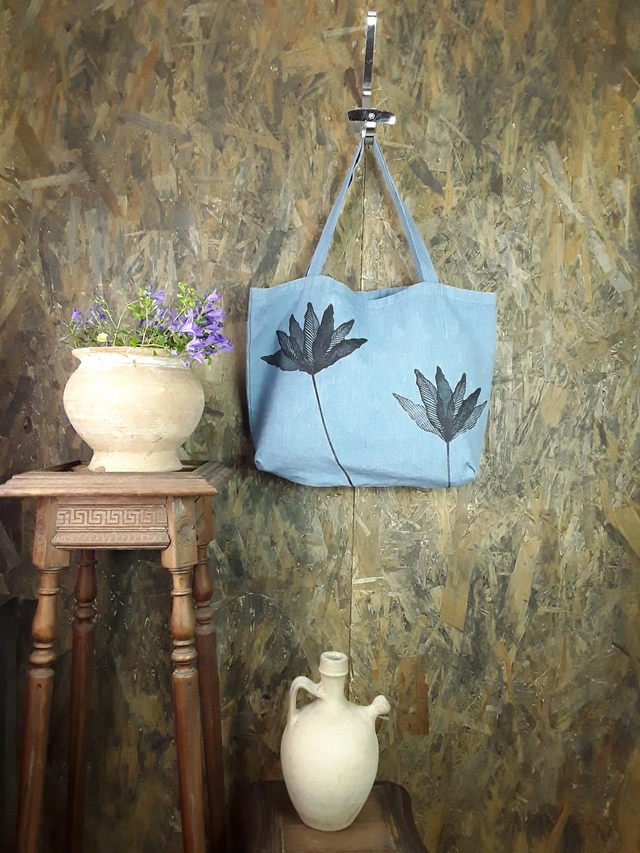 Cabas en lin teinté à l'indigo FLEURS DES CHAMPS